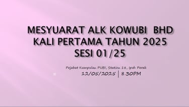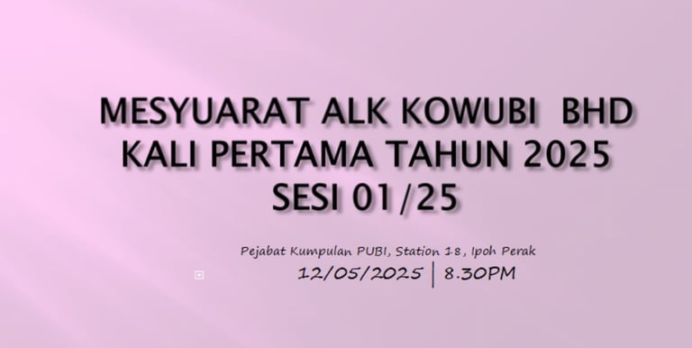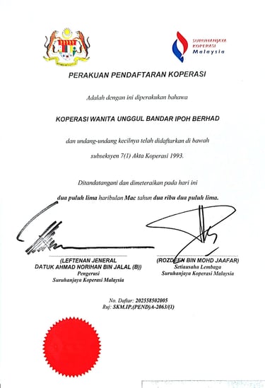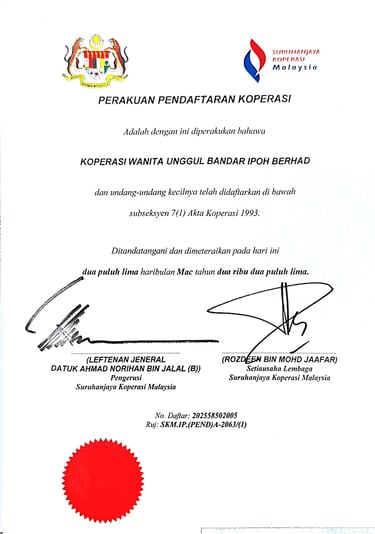 07hb Mei 2025 Kowubi Berhad telah lulus didaftarkan.Satu Koperasi untuk Wanita-wanita di Perak.