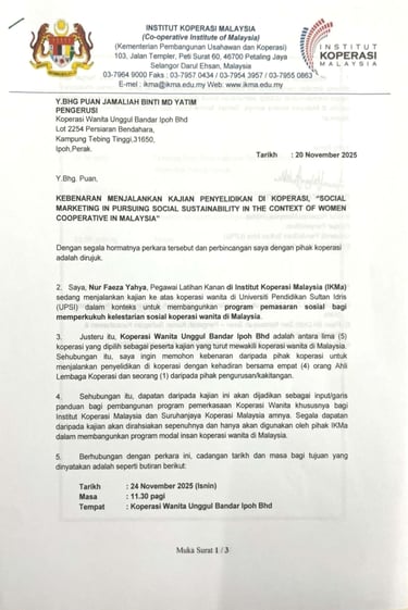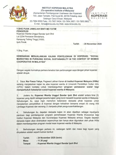 Pada 24hb November 2025, Koperasi Wanita Unggul Bandar Ipoh Berhad (KOWUBI) berbesar hati menerima kunjungan daripada Puan Feeza, wakil Institut Koperasi Malaysia (IKMA).