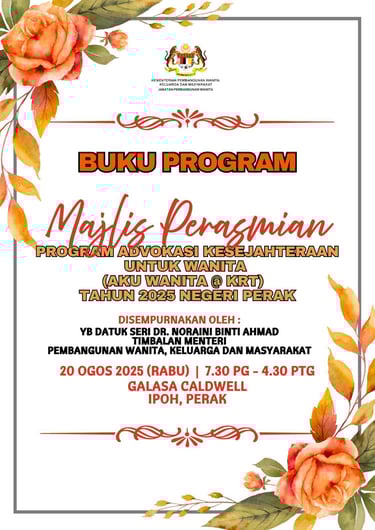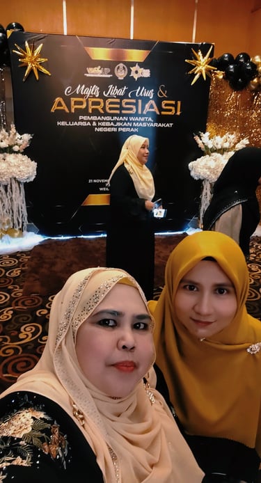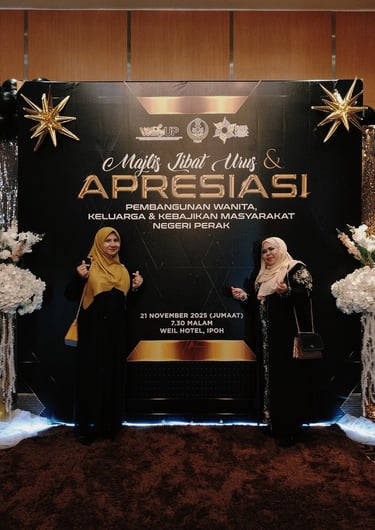 Jemputan ke Majlis Libat Urus dan Apresiasi Pembangunan Wanita,keluarga & Kebajikan Masyarakat Negeri Perak 21/11/25 - WEIL HOTEL tahun 2025 Anjuran Sekretariat Pembangunan Wanita & Masyarakat Negeri Perak.Terima Kasih Yang Berhormat Dato’ Salbiah binti Mohamed, Jawatankuasa Pembangunan Wanita, Keluarga, Masyarakat, Pembangunan Usahawan dan Koperasi.Yang Berusaha Encik Mohamad Rozlan bin Mohamad Rozalli, Pengarah Sekretariat Usahawan Negeri Perak (STeP),Yang Berusaha Encik Firdaus bin Hussin, Pengarah Suruhanjaya Koperasi Malaysia (SKM) Negeri Perak,